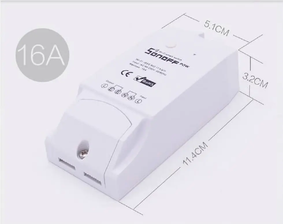 Le Sonoff Pow est un interrupteur connecté piloté par Wifi ou par téléphonie mobile (3G/4G) à l’aide de l’application EWeLink. Il est donc compatible avec votre Google Home. Il permet de piloter n'importe quel appareil jusqu'a 3500Watts (et 16 Amperes). Il fonctionne autant en Amérique qu'en Europe puisqu'il accepte des tensions a allant de 90V a 250V.En plus de'agire comme un interupteur, le module Pow le Sonoff POW est capable de mesurer et de suivre l’énergie consommée par l'appareil qui lui est connecté. Il affiche la consommation en watts de ou des appareils branchés dessus. Fait interessant a noter : il est équipé d'un fusible, facilement remplaçable, ce qui assure une certaine sérénité.
